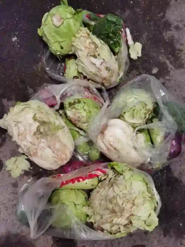 查杨和邻居们从雨里搬运回的蔬菜 图源:受访者