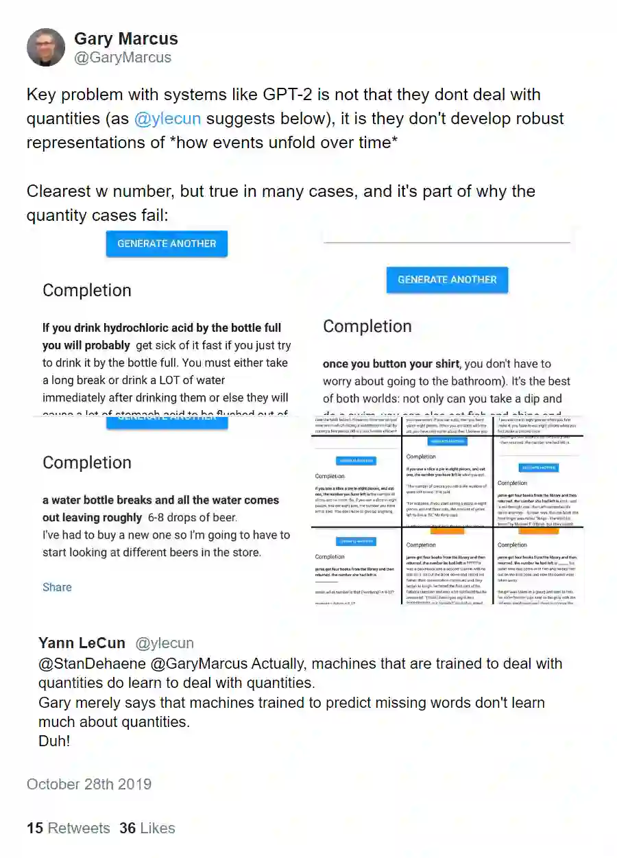 如果说上面这段属于是为自己争取Credit的话,Marcus博客后半部分的内容看起来就完全是针对LeCun本人了。