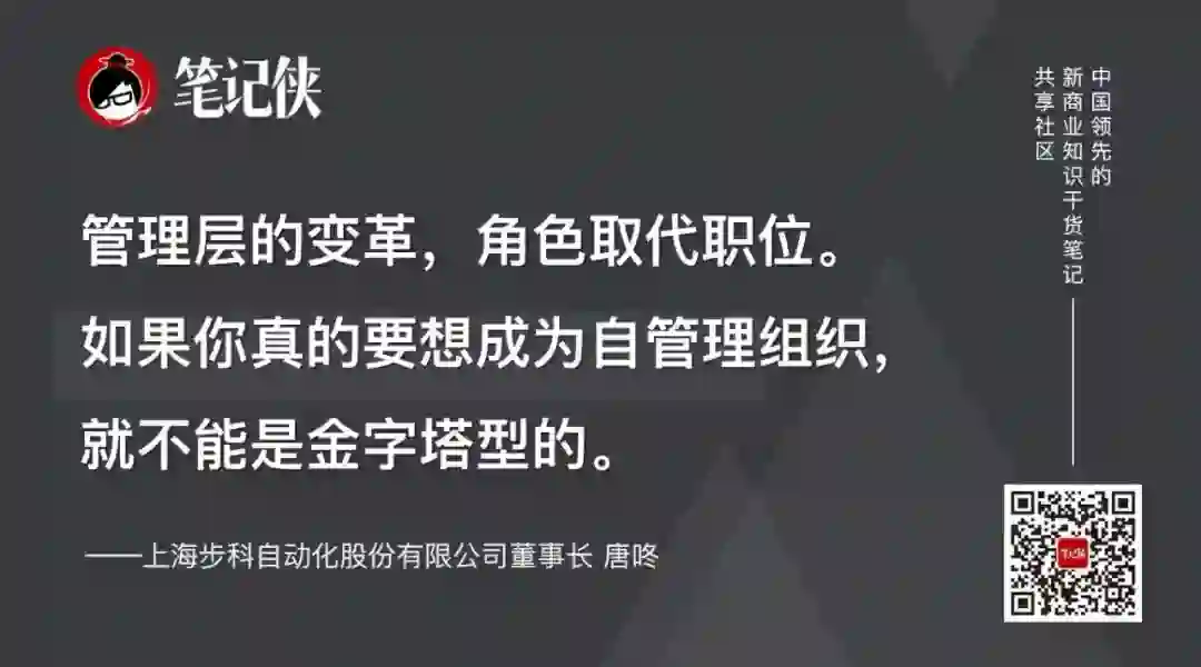 管理层的变革,角色取代职位。如果你真的要想成为自管理组织,就不能是金字塔型的。