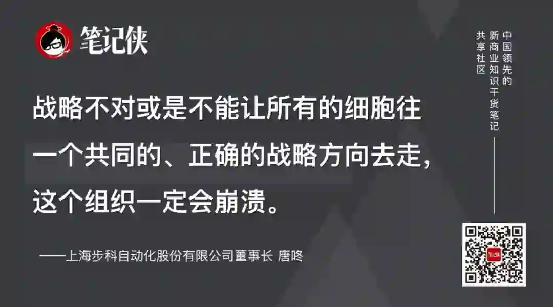 如果战略不对或是不能让所有的细胞往一个共同的、正确的战略方向去走,就像一个没有生命密码的生命体,就好像细胞连分裂的意愿、连共同成长的意愿都没有,那这个组织一定会崩溃。