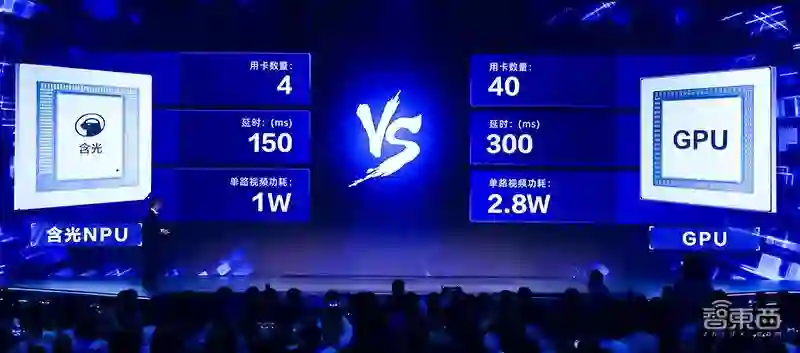 根据现场演示,杭州城市大脑实时处理主城区交通,需用40颗传统GPU,延时为300ms,单路视频功耗2.8W;而使用含光800仅需4颗,延时降至150ms,单路视频功耗1W,有效节约了硬件和时间成本。