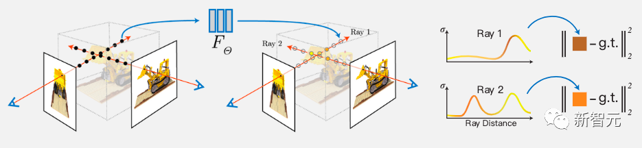 简而言之,NeRF不再只使用一个网络来表示场景,而是同时优化两个网络,一个「粗粒度」网络和一个「细粒度」网络。