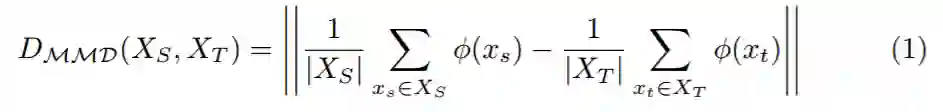 [12] 通过用 [8] 中提出的多核变量 MMD(MK-MMD)距离代替 MMD 距离改进了以前的工作。与卷积神经网络(CNN)中的学习任务相关的隐藏层被映射到再生核 Hilbert 空间(RKHS),并且通过多核优化方法使不同域之间的距离最小化。