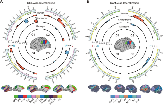 以上发现表明脑结构与其解剖连接模式的不对称性是驱动语言以及复杂工具使用进化的内在生物学基础。