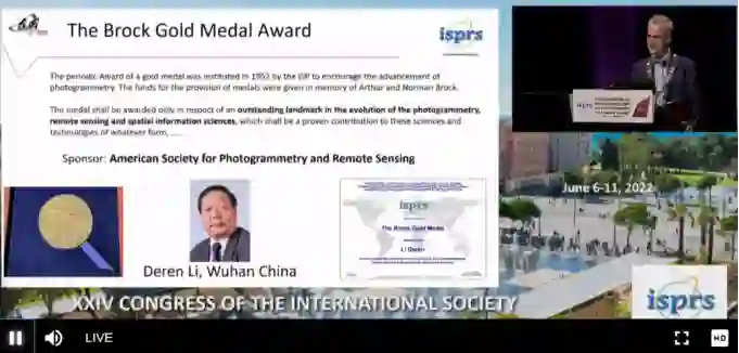 布洛克金奖由美国摄影测量与遥感学会(ASPRS)资助设立,每四年评选一位在摄影测量、遥感和地球空间信息领域作出杰出贡献的科学家,是国际摄影测量与遥感领域最具影响力的一个奖项。李德仁院士是我国获此殊荣第一人。