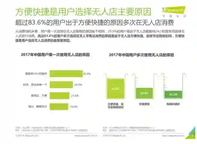 艾瑞报告显示:83%用户愿意体验无人零售消费场景,39%用户倾向支付不排队,方便快捷的购物体验。