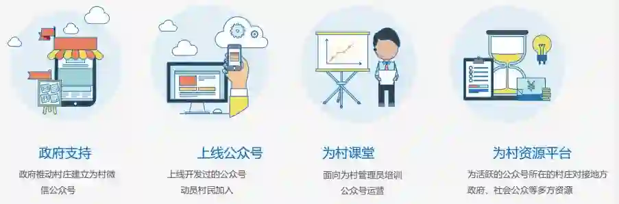 “为村”是一个互联网公司投资5000万元,借助月活跃用户超过10亿的社交平台,专门开发适合乡村管理者和村民低门槛入门互联网的村庄微信公众号。与电商下乡不同,它是面向乡村的互联网社交与党政为民服务一体化综合平台。