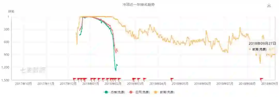 从榜单第一掉到了目前教育分榜800+,冲顶正在冲击底部