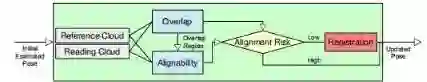 第四篇提出一种预测和防止激光定位失败的策略。我们解决的方法是在匹配前对点云的内容进行明确分析。通过分析两个输入点云之间的空间重叠程度和重叠区域内可用的几何约束来学习预测误对准概率的模型。我们为这些约束定义了一种新的可对准性的度量。该方式对三个真实世界的数据集进行评估,并和基准的方式进行比较。实验证明我们的方法如何在未知和杂乱的人造环境中提高激光定位的可信度。