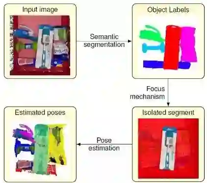 第二篇文章提出了一种需要最少人为干预的方法,并通过快速数据采集方法和合成数据生成程序避免了对三维模型可用性的依赖。这项工作建立在先前关于杂乱拾取场景语义分割工作的基础上,以便在杂乱环境中隔离单个对象。并在合成场景上训练一个额外的网络,以根据从分割结果中提取的以对象为中心的编码来估计目标姿态。