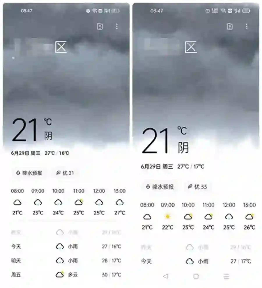 我们使用着同样的手机、同一个款天气软件,也更新到了同一版本。