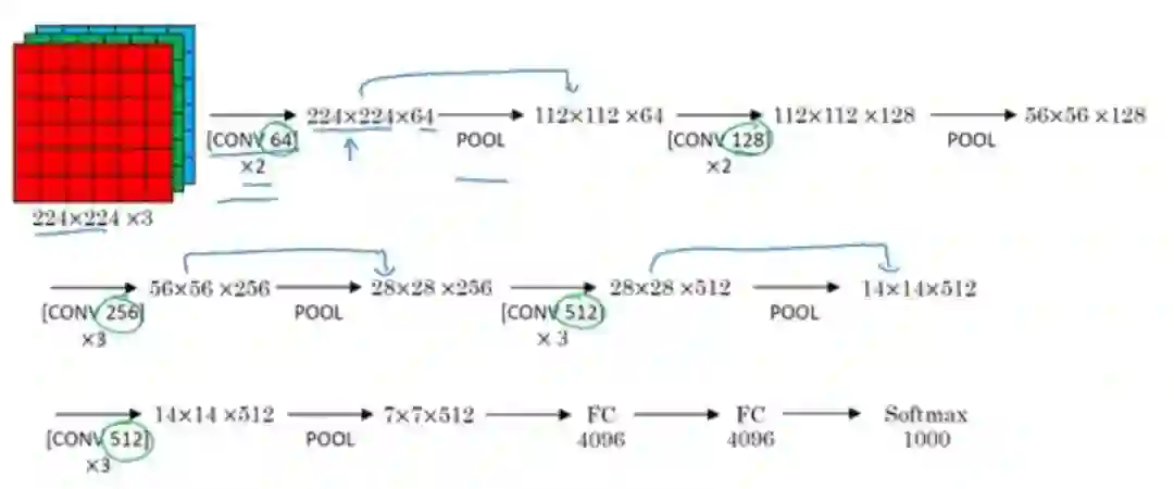 输入:224 x 224 x 3 滤波器大小:3 x 3 x 3 滤波器个数:64