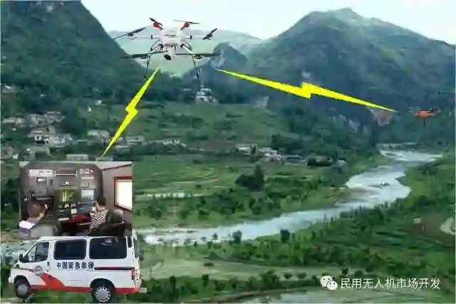 必要时使用另一架无人机,携带通信中继吊舱,在起降点上空100米以下悬停,避免地形的遮挡,扩大通信覆盖范围。