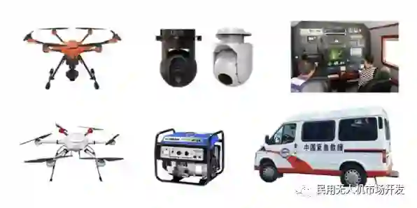 不少于12个无人机动力电池组;一台可车载运输的发电机;一辆紧急救援车。