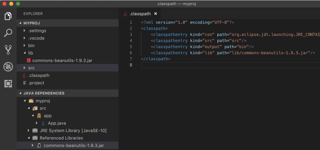 你可以编辑 .classpath 文件来添加库。该扩展将自动在类路径中加载这些库,从而运行代码将会变得轻而易举。