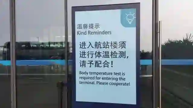 武汉天河机场航站楼入口体温检测提示