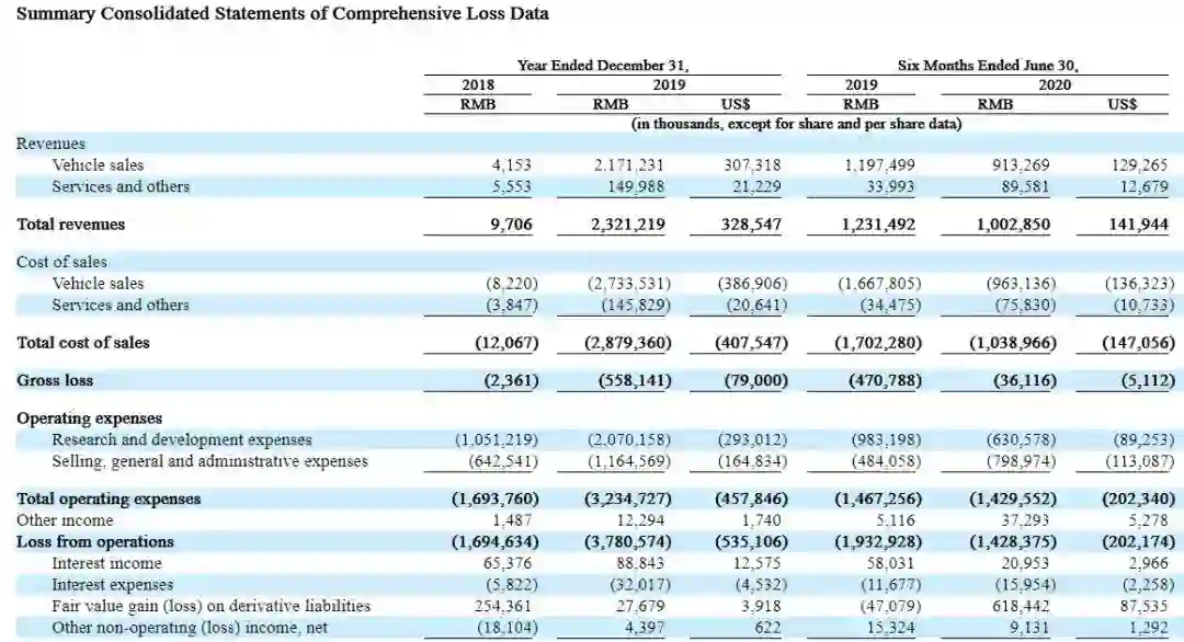 小鹏汽车2019全年实现营收23.2亿元人民币,2020上半年,小鹏实现总营收10亿元人民币,在疫情影响下同比下降18.6%;