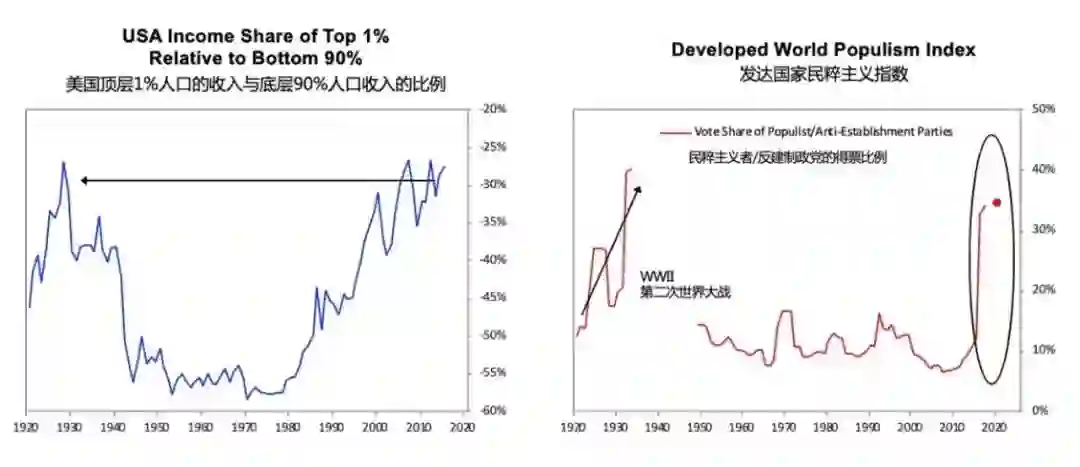 左翼和右翼都会有民粹主义,左翼的民粹主义,他们没有太多钱;右翼民粹主义资本家也会有一定的良知,这里我们衡量的是民粹主义的抬头。也就是面临社会问题了。