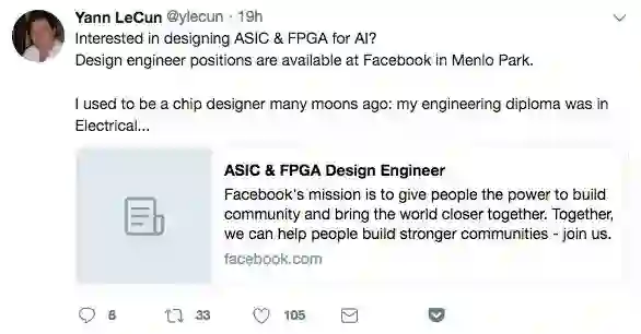 从 Facebook 发布的招聘信息来看,该公司正在组建一个新的团队来设计自主芯片。其公司目前正在招聘 ASIC 和 FPGA 设计工程师,候选人要求具有架构和设计半定制和全定制 ASIC 的专业知识,需要与软件和系统工程师合作,了解当前硬件的局限性,并利用他们的专业知识,打造针对多种应用(包括 AI/ML,压缩,视频解码等)的定制解决方案。