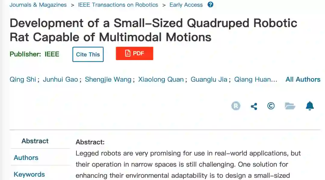 在4 月 7 日发表在IEEE Transactions on Robotics上的一项研究中,北京理工大学的团队“灵微智探”就发布了一款名叫SQuRo的智能类鼠机器人。