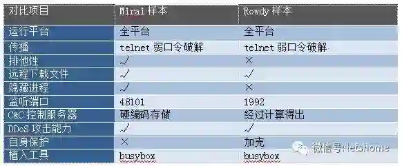 经过对比发现,Rowdy 其bot上线方式与 Mirai 相同,ddos攻击代码一致,代码结构基本无变化,基于这些特征已经可以确定,Rowdy 样本是Mirai物联网恶意软件的变种。