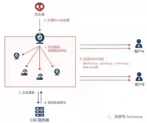 还有就是捕获手段非常简单,可以在短时间内大量组织起来发动 DDoS 攻击的设备。只要设备搭载了相关的操作系统,并且能够联网,那么黑客就可以入侵操作系统,让这台设备去干些什么。