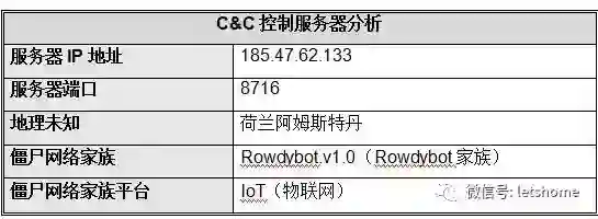 根据分析,Rowdy僵尸网络的C&C控制服务器,IP地址为185.47.62.133,地理位置位于荷兰。僵尸主机与C&C控制主机通讯端口为8716。据关联分析,C&C控制服务器与僵尸主机通讯协议为TCP协议,通讯包字节基本都在80~90字节之间。