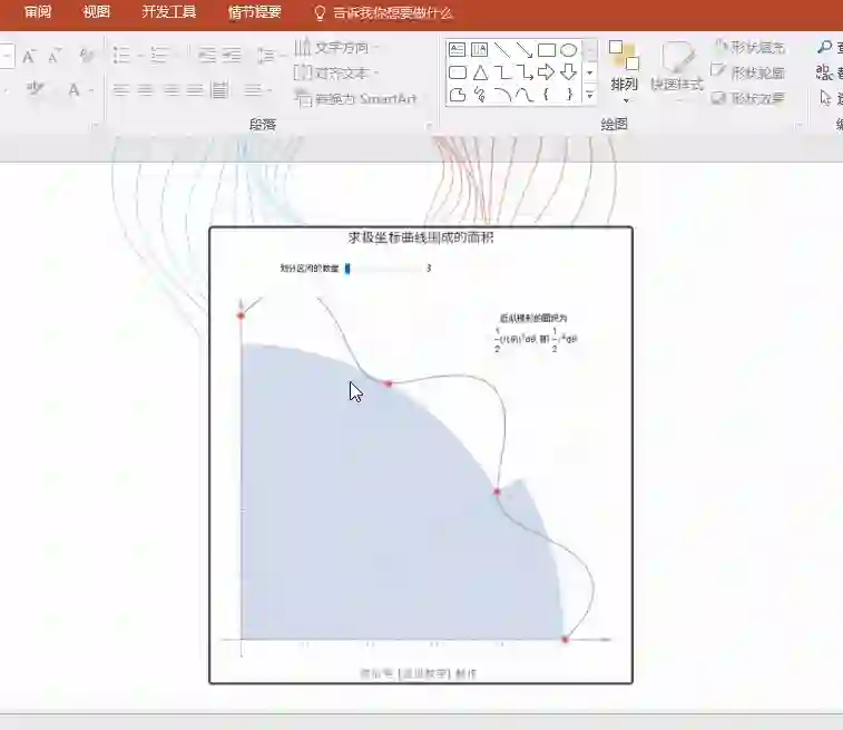 在 PPT 中可拖动进度条来查看求极坐标下曲线面积的动画