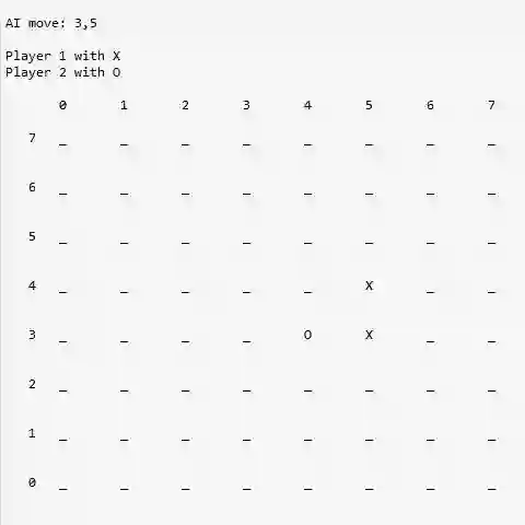 我们先来看两局训练好的 AI 模型(3000 局 self-play 训练得到)对弈的情况,简单感受一下:
