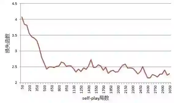 从优化的角度来说,我们是在 self-play 数据集上不断的最小化损失函数: , 其中第三项是用于防止过拟合的正则项。既然是在最小化损失函数,那么在训练的过程中,如果正常的话我们就会观察到损失函数在慢慢减小。