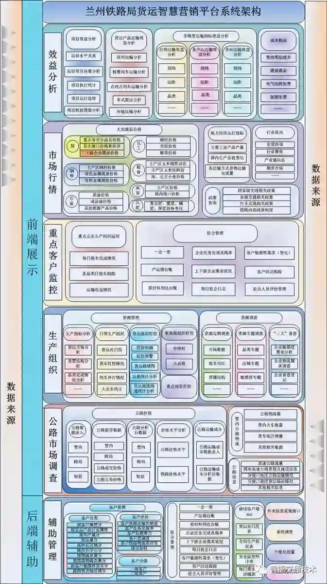 中国铁路兰州局集团有限公司货运智慧营销平台采用“面向服务”的三层结构体系搭建,可根据不同岗位的个性化业务需求进行模块组合与多维图形化展示,实现了货源调查、驻企日志、生产组织、客户管理等业务协同工作,支持与其他系统使用层进行应用整合,从而提高了数据的一致性和实效性,一定程度上提升了过程管控能力,强化了货运作业的服务水平和货运资源的利用效率,增加了货运的经济效益,并为货运市场的营销决策提供数据支撑。
