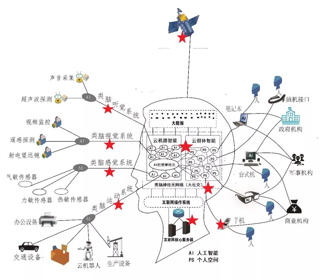 其中,人类群体智慧以云群体智能的形式成为了互联网的“右大脑”,设备的机器智能以云机器智能的形式形成了互联网“左大脑”。