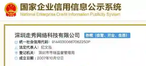 目前,在国家企业信用信息公示系统中,张文泓仍然是走秀网的法人、董事长和总经理。