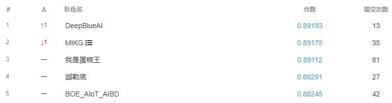 评价方式采用 F-1 分值,在最终榜单上我们 f1 达到了 0.89538 与第一名仅相差0.00002。