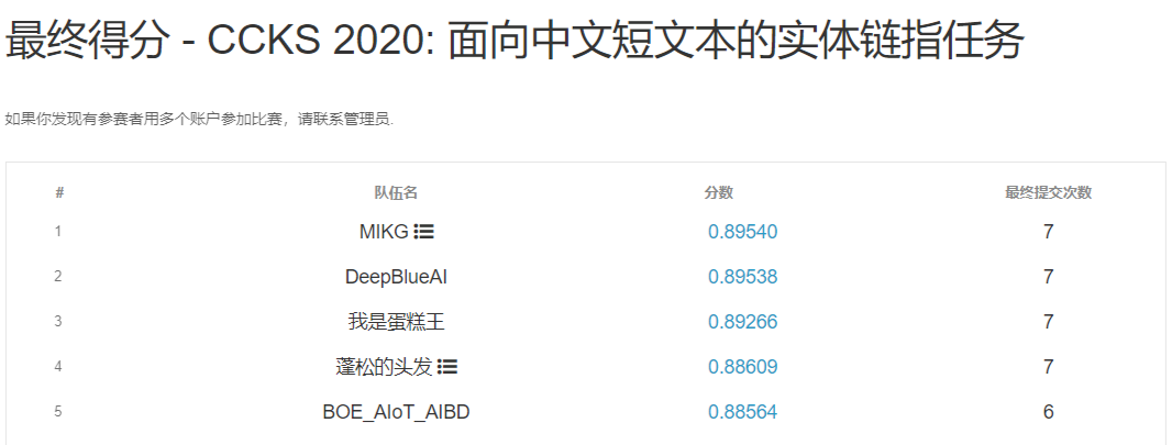 我们在 2020(全国知识图谱与语义计算大会)举办的“面向中文短文本的实体链指”评测任务中取得了 A 榜第一名的成绩,B 榜第二名的成绩,其中基于问答的实体类型判断模型巧妙的利用到了已知实体的信息,此模型对后续此类型的任务提供了借鉴意义。
