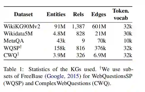 作者采用了5个数据集进行实验,分别是:WikiKG90Mv2、Wikidata5M、MetaQA、WQSP、CWQ,其中前两个数据集用来评估KGT5的链接预测能力,后三个数据集用来评估其QA能力。