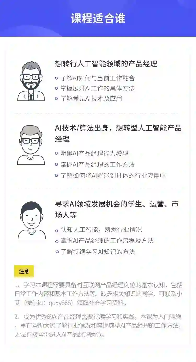 我们找到了在智能产品领域深耕多年、前爱奇艺AI产品总监@连诗路老师,共同发起《15天入门AI产品经理》学习计划,带你系统化掌握4大入门必备知识模块: