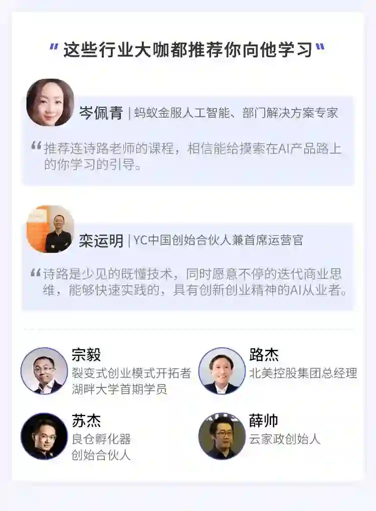 这门课程目前已经帮助超过3000名正在探索AI发展方向的产品经理成功入门,收获好评不计其数,如下,供你参考: