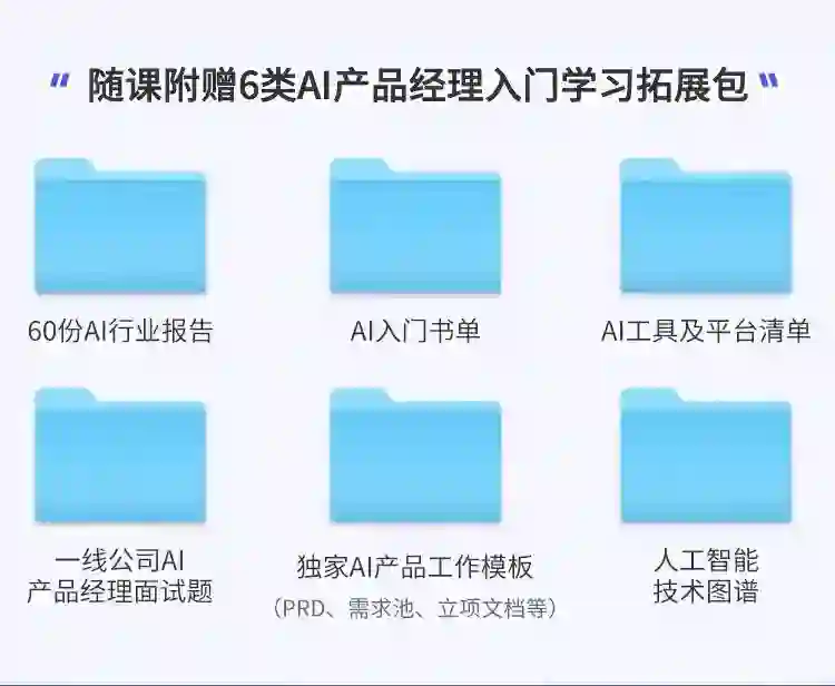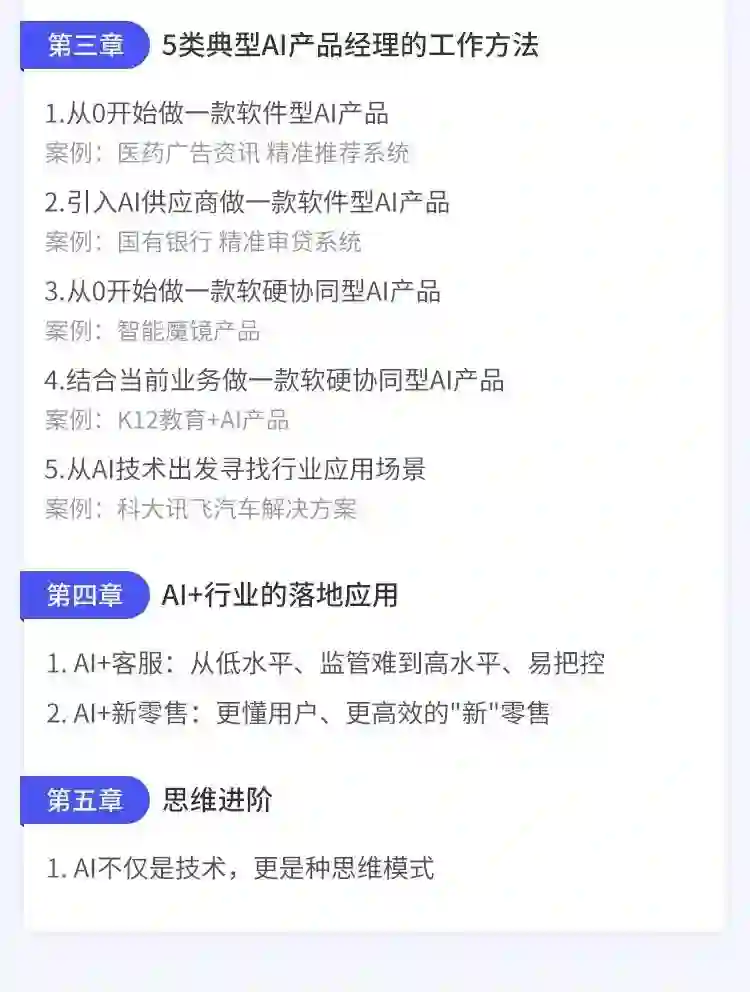 • 掌握5大类典型需求场景下的AI产品经理工作方法