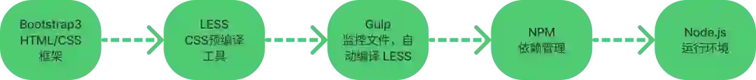 从这里你就可以知道:前端库是互相依赖的。如果直接看前端需要哪些库,那么零零散散的有一堆,但是当你真的开始下手学习一个框架的时候,你会发现好多框架可以从一条线里牵出来,构成一个完整的开发工具库,这些自然就都掌握了。