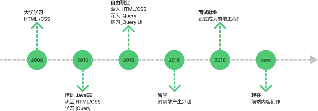 当然我不会否定自己,最后一次面试失败之后,突然就想要不要改行做一下前端,毕竟留学的时候钻研了不少,又在自由职业的时候做过一些产品,更是有浓厚的兴趣,于是我立刻下了决心转前端。