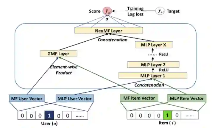 其实把任何算法前面加个N,改成neural某某都是比较好发paper或者取得效果的。这篇文章比较有意思的一个点我觉得不在于将GMF或者MLP加在CF中,而是为CF构建了一套针对隐式反馈的建模理论。
