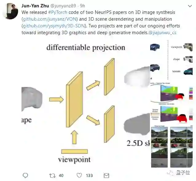 这两篇论文,都与3D图像有关,都被NeurIPS 2018大会收录了。朱俊彦在Twitter上说,是他们团队整合3D图像和深度生成模型工作的一部分。