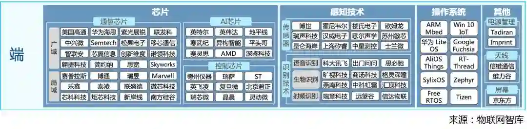 端详物联网产业的“端”,值得关注的细分领域包括NB-IoT芯片、AI芯片以及物联网操作系统。