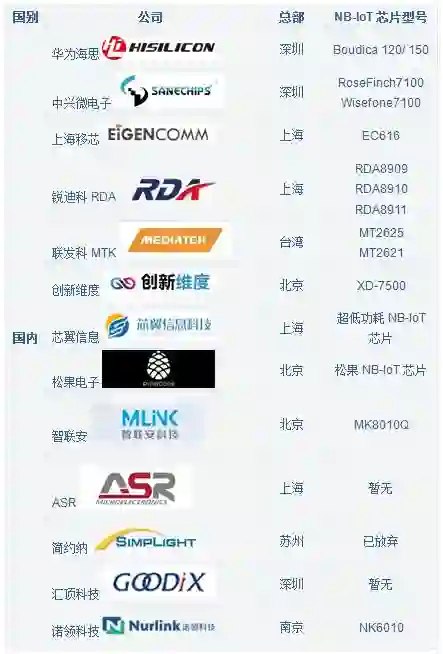 1. 一网打尽!国内外22家NB-IoT芯片厂商