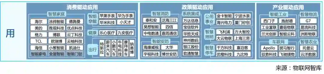 与以往的物联网应用分类不同,2019年我们将“用”这个层次,划分为消费驱动型、政府驱动型以及产业驱动型应用。