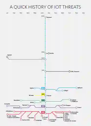 和物联网连接数的激增“遥相呼应”,物联网设备的漏洞和僵尸网络的增长也在一路狂奔。