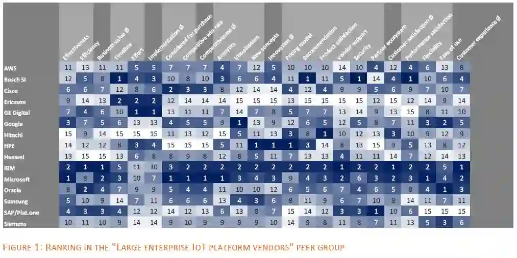 因为物联网PaaS平台的战略性地位,在teknowlogy最新一期的物联网年度调研中,邀请2,031名使用者对不同的物联网平台打分,最终的评分结果千差万别。