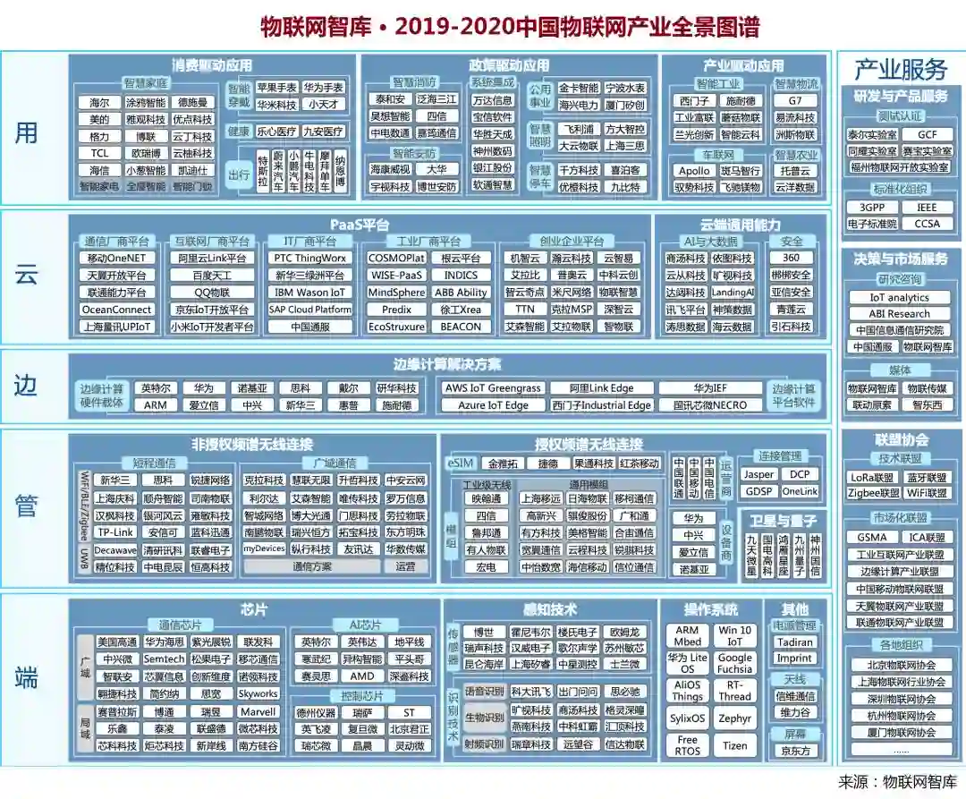 从2016年起,物联网智库每年度都会推出一份物联网IoT产业生态全景图谱。2019-2020年度最新版的IoT产业图谱已在本周正式发布,阅读这份图谱,是你跟踪产业生态进展、收集IoT领域主要参与者信息、洞察行业未来发展趋势的有效手段。