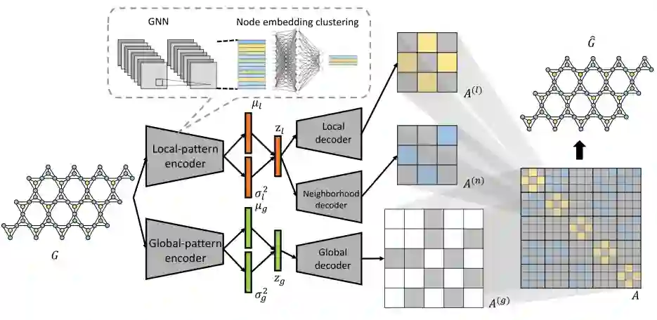 作者提出了一个全新的变分编码器,PGD-VAE。PGD-VAE 可以通过学习周期图的局部结构,全局结构以及局部结构之间的邻域链接来分解并合成周期图。